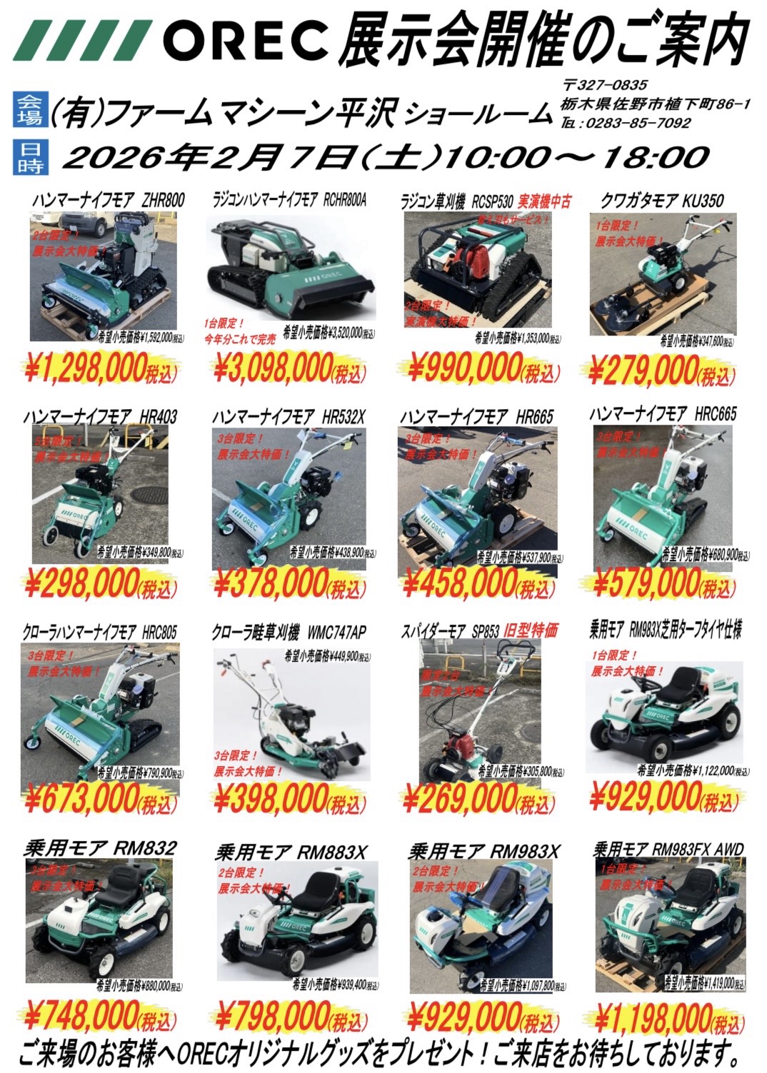 2月7日(土)オーレック&マキタ合同展示会を開催します!